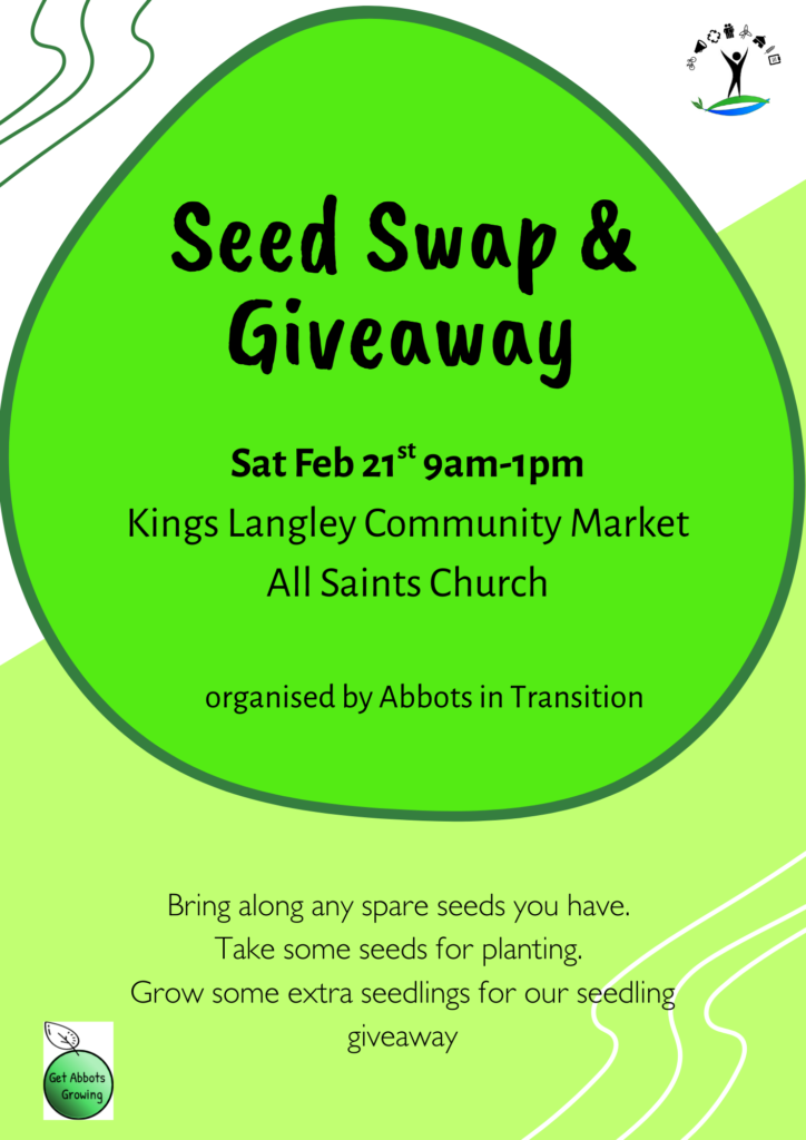 Abbots in Transition will have a seed swap stall at Kings Langley Community Market on Saturday Feb 21st.